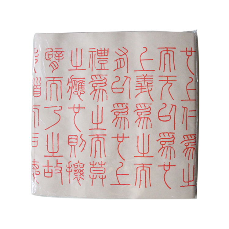 名 称:双一章摹写帖(毛笔双一章描红) 尺 寸:193*30 材质:仿古宣纸 字 体:秦小篆 工艺:单红色印刷 单 位:包(内含十张,即十遍小篆体双一章) 使用方法:直接在其上用毛笔描摹书写 产品内容:《德道经》双一章(第一章论德和第四十五章观眇) 使用对象:学生(学校、私塾、国学幼儿园、书法班)传统文化修习者 作 用:书法练习,经典抄写(自我提升)