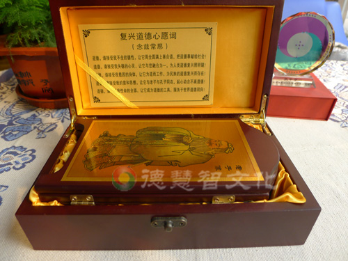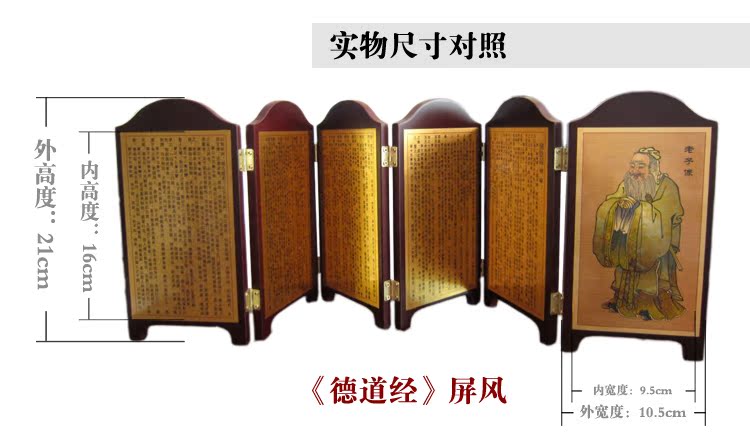 产品名称:《德道经》屏风 内 容:《老子·德道经》修真版 规 格:10CM×21CM×6 材 质:木质,金箔镶嵌 包 装:传统木质礼品盒包装。 使用方式:办公室、商铺,家宅,书房等各场所