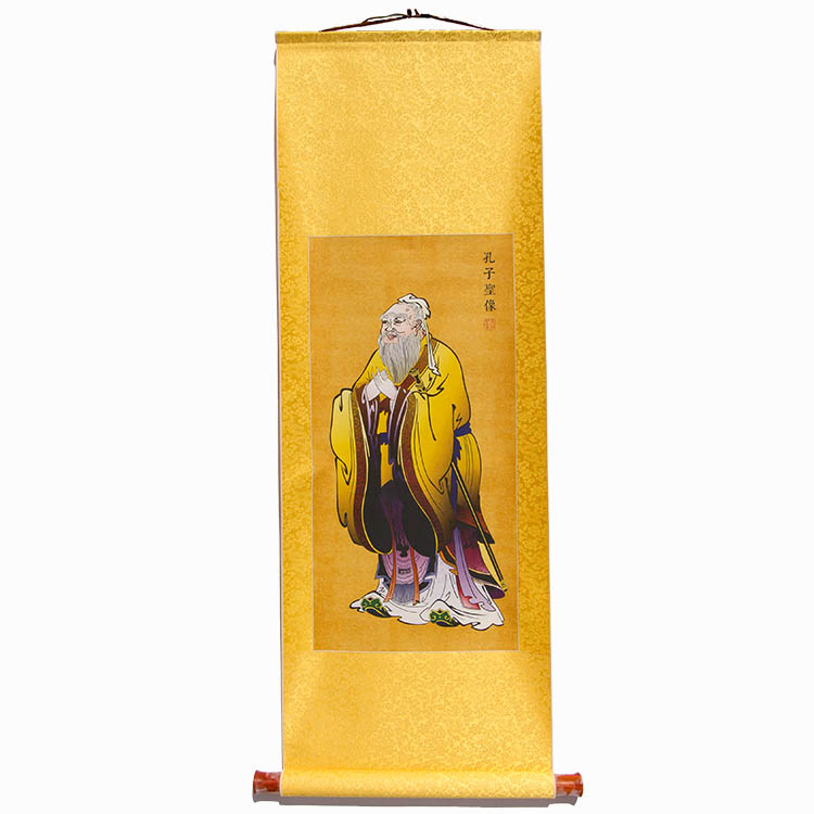孔子圣像(小款) 应广大传统文化学习者,以及一些学校,学堂委托,根据当今社会房屋结构特点,本着恭敬的心态,北京德慧智文化传媒公司又出了这一尺寸稍小些的圣象画卷。从制作、装裱,到包装各个环节的工艺都进行了改造提升,处处都体现了我们对圣人的恭敬。同时也提升了圣象本身的庄严。大家可以根据个人的需求请购。 圣像简介(小款)