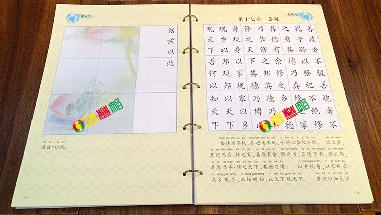本书是原性慧天地系列的《中华德慧智教育·幼儿经典读本》的放大版本。主要是为了方便教师教学而设计,直观大方,采用德慧智特色的九宫排版,单字1.5厘米,方便直接展示给学生看。